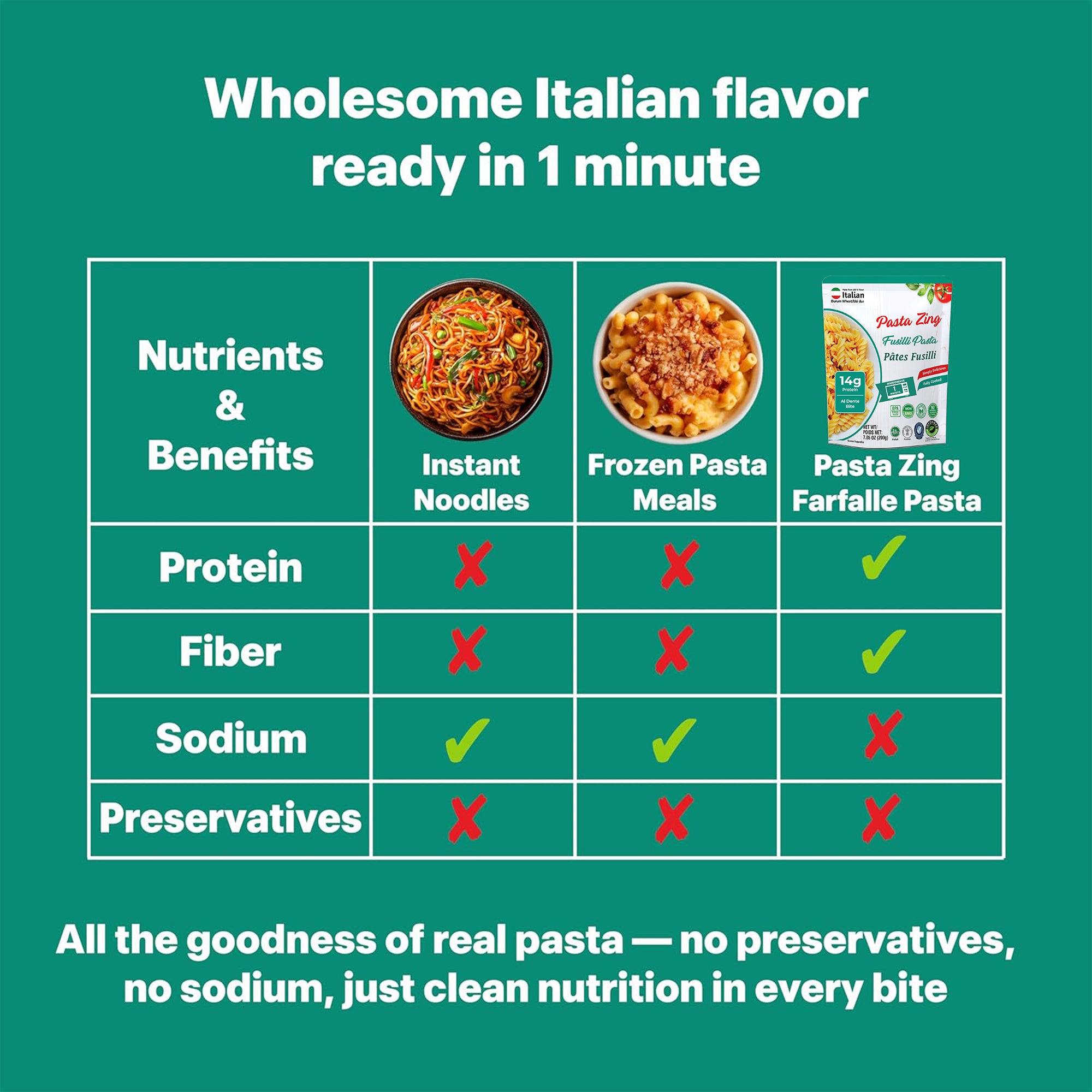 Whether you pair it with Alfredo, Arrabbiata, Pesto, Tomato & Basil, or use it for salads, bowls, or meal prep, this pasta fits effortlessly into any lifestyle. Just heat, toss, twirl, and enjoy a warm, satisfying meal in minutes.